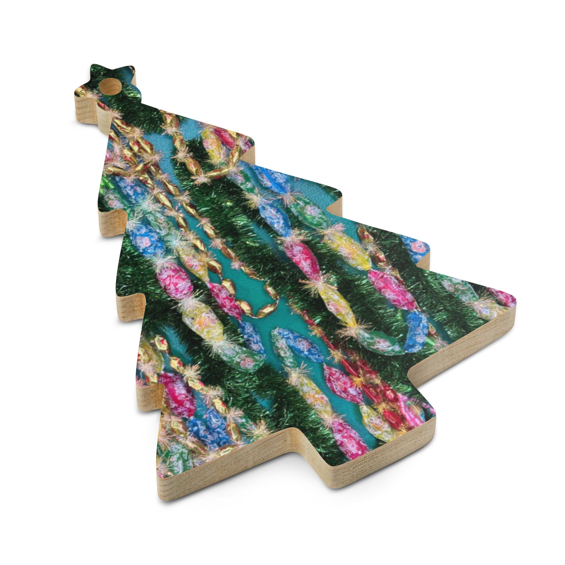 Made from solid, natural Hinoki wood, they’re durable yet lightweight and soft to the touch. Each ornament is 9mm (.37") thick and comes with a red paper ribbon to hang, or use your own. Artist's info is printed on the back, and an attached magnet adds another way to display these in your space.